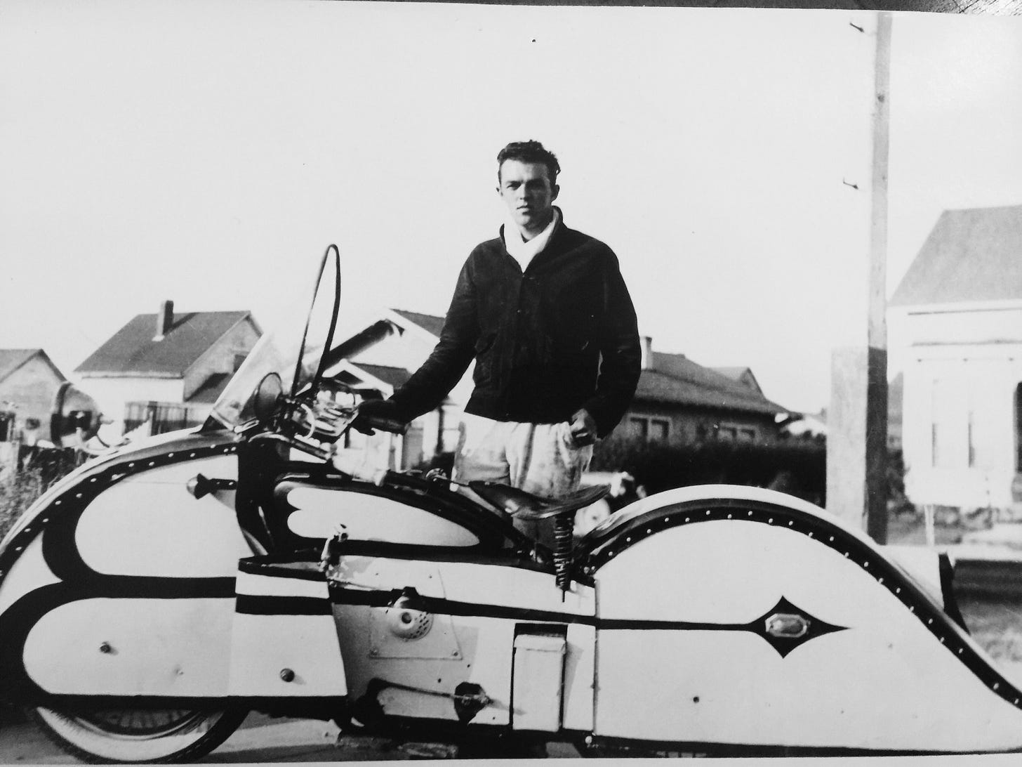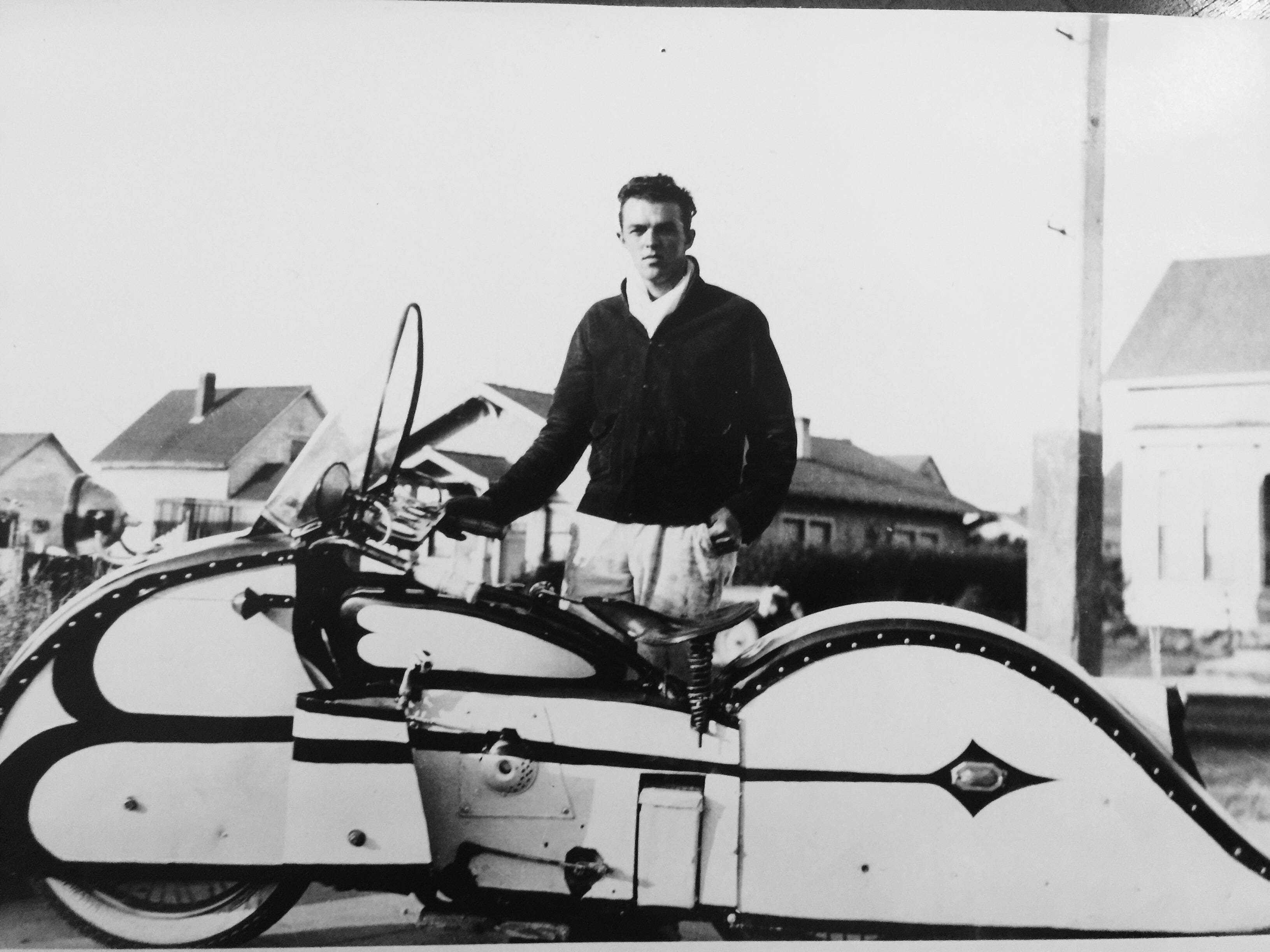 “Aviator!” a patron of the cantina shouted as people rushed out to see the aerodynamic motorcycle that stopped in their small Mexican town. Humboldt B. Gates looked more like the aviator Charles Lindbergh that day than a motorcyclist with his pilot’s goggles, white silk scarf and leather flight jacket. A few weeks before, Humboldt had left his hometown of Eureka, California. It was the spring of 1934. He rode over 300 miles south through the redwoods, the mountains and inland valleys of recently completed Highway 101 to San Francisco. The Golden Gate Bridge was under construction but not yet open. It was a trip of dreams. He’d imagined Mexico City and was now on his way there. Humboldt had completed the modifications of his Indian motorcycle, gathered his tools, his clothes, a bedroll and the money he’d made working as a warehouseman and at the airport, packed up his Streamliner and headed south.