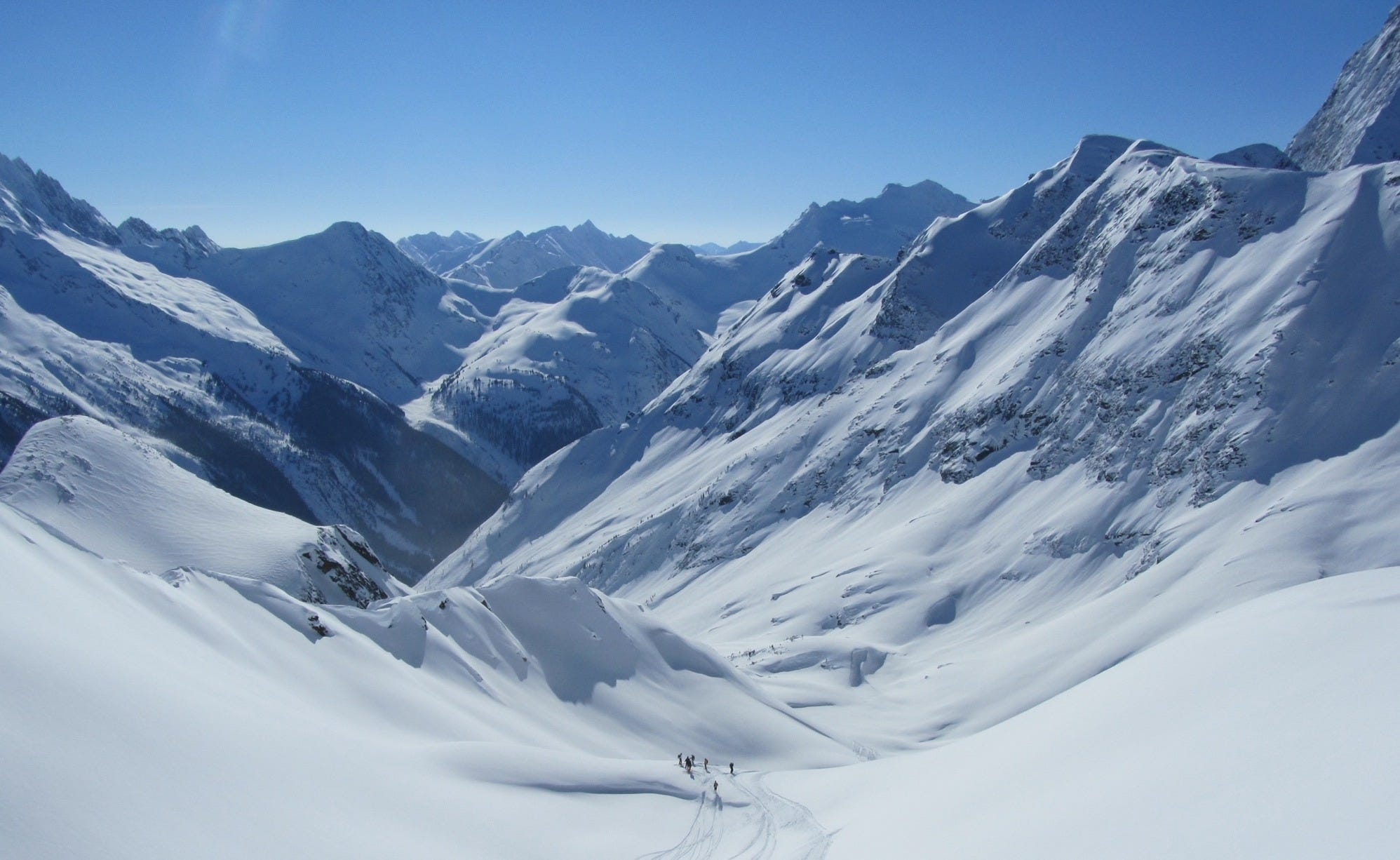 The most ideal trip was into the Cariboo Mountains, for the second time. Six feet of snow fell before arriving. Blue sky and sub-zero temperatures settled in for the week. The temperature never got above zero. You could ski everywhere. The guides said it was one of the best ski weeks in recent memory. The slopes were stable. No weak or rotten layers underneath, ready to let go. Guides led us into steep canyons that they had not skied for five years. They were excited which made us excited.
