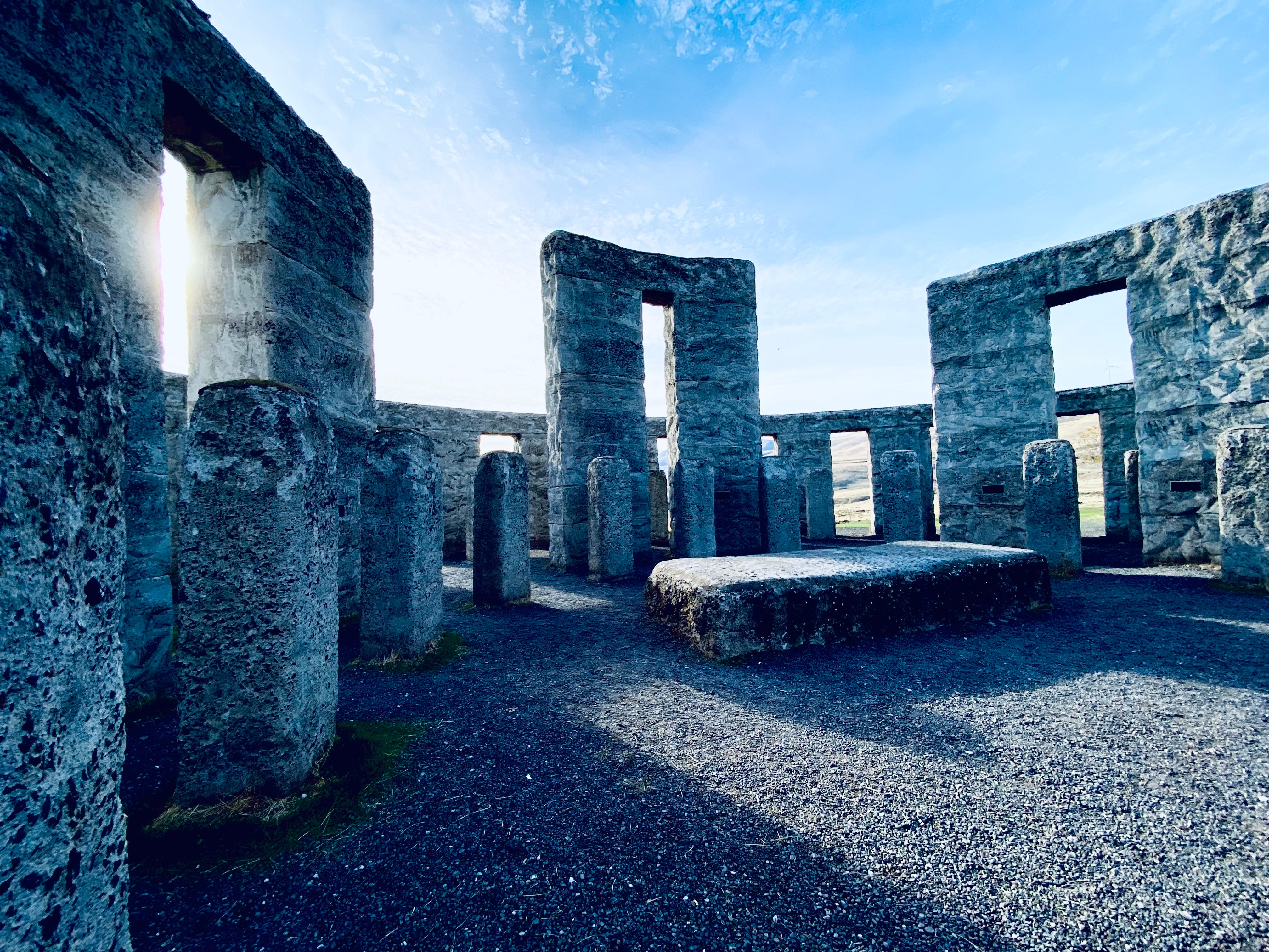 We were recently out at the Maryhill Stonehenge on the Columbia River, touring the concrete artifact built to the identical specifications of England’s original Stonehenge a century ago. The alter stone at Maryhill Stonehenge is placed to align with sunrise at the Summer Solstice. The concrete pavilion was built by Samual Hill as a memorial of remembrance to soldiers from Klickitat County, Washington who died in World War One. It was the first Great War memorial in the nation.